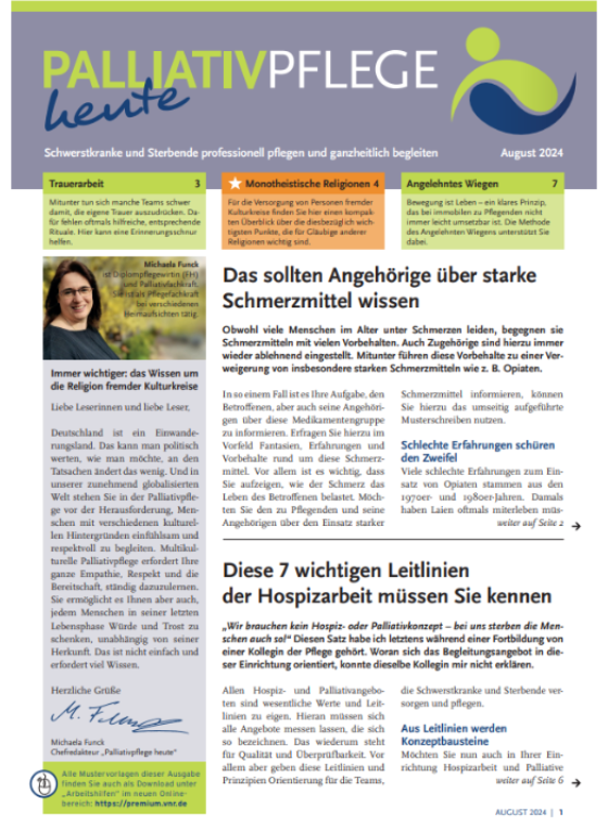 Testen Sie jetzt „Palliativpflege heute“ und profitieren Sie von einer maßgeschneiderte Unterstützung für die Begleitung, Betreuung und Versorgung schwerkranker und sterbender Menschen!